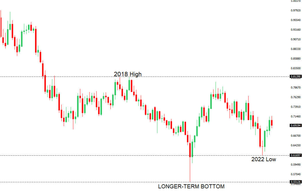 There are signs of the potential formation of a longer-term base following the recent surge back above 0.6500. The recent weekly close back above previous support now turned resistance at 0.6682 strengthens the outlook for a bullish structural shift. Next key resistance comes in at 0.7284.AUDUSD – fundamental overview
