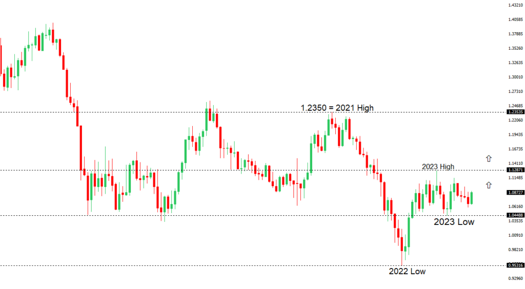 The Euro has been in a multi-month consolidation since bottoming out in 2022. Setbacks have since been exceptionally well supported on dips below 1.0500, with a higher platform sought out ahead of the next major upside extension. Look for a push through the 2023 high at 1.1276 to strengthen the constructive outlook and extend the recovery run towards 1.2000. Only back below 1.0400 negates.EURUSD – fundamental overview