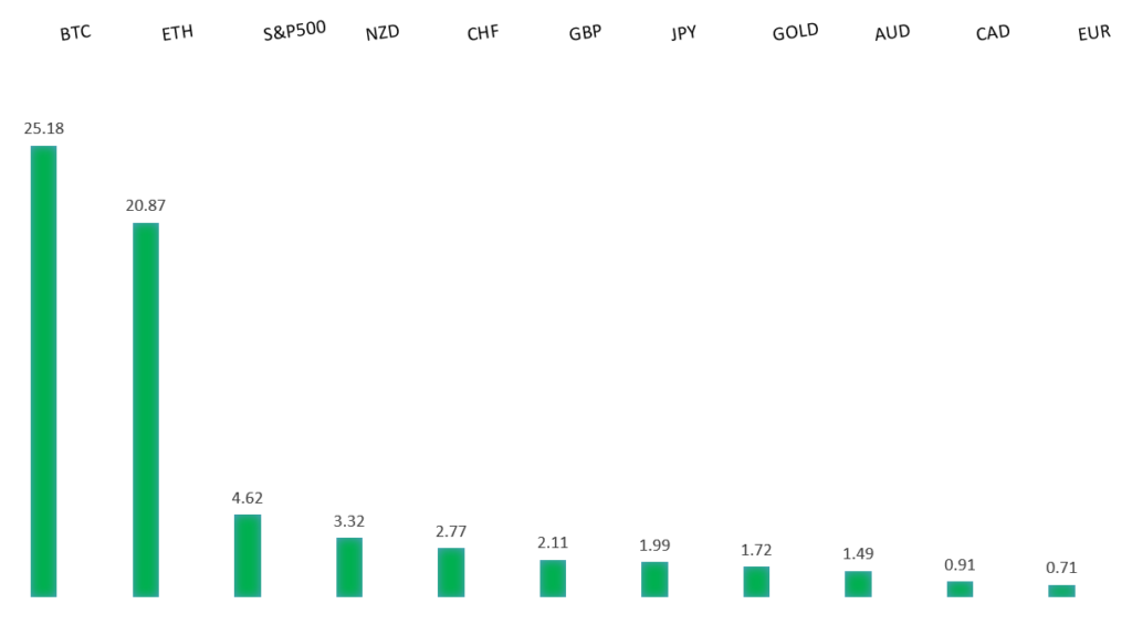 Peformance chart: 30 Day Performance vs. US dollar (%)