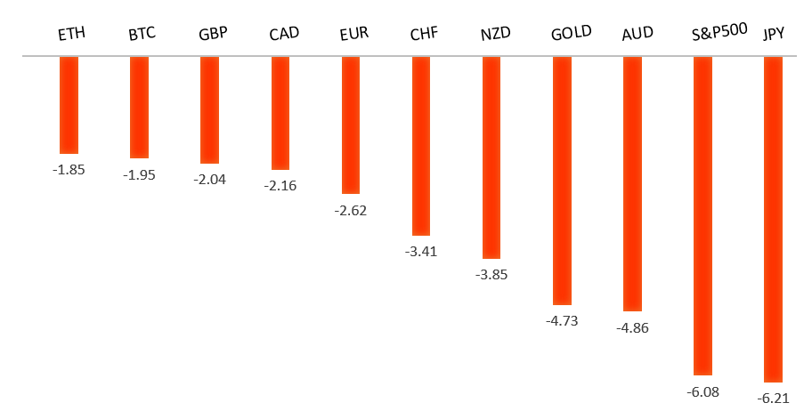 Peformance chart: 30 Day Performance vs. US dollar (%)