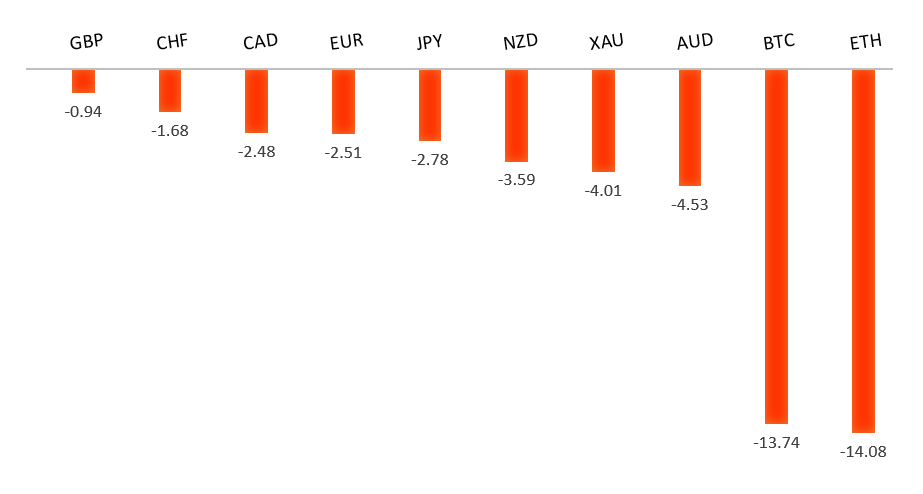 Peformance chart: 30 Day Performance vs. US dollar (%)