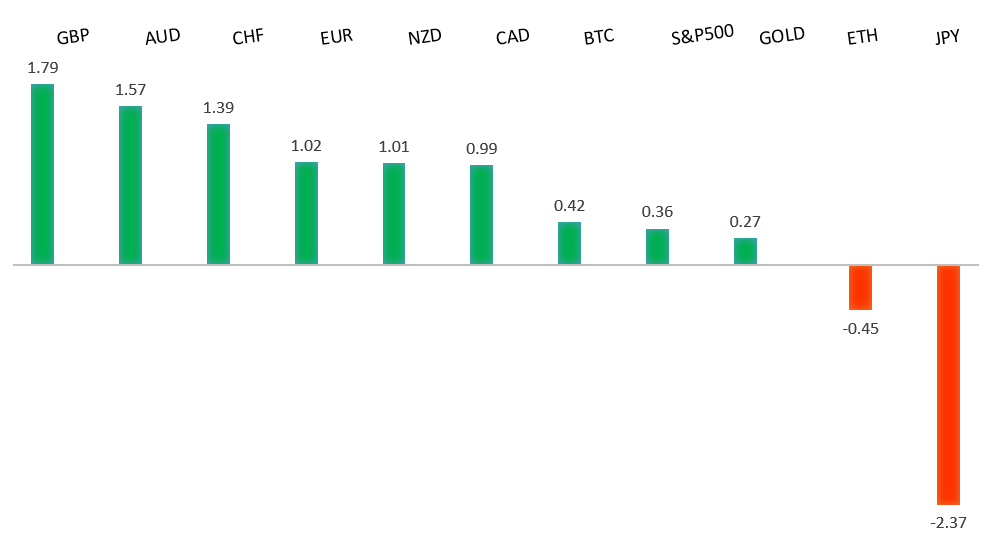Peformance chart: 30 Day Performance vs. US dollar (%)
