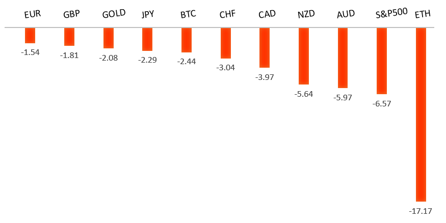 Peformance chart: 30 Day Performance vs. US dollar (%)