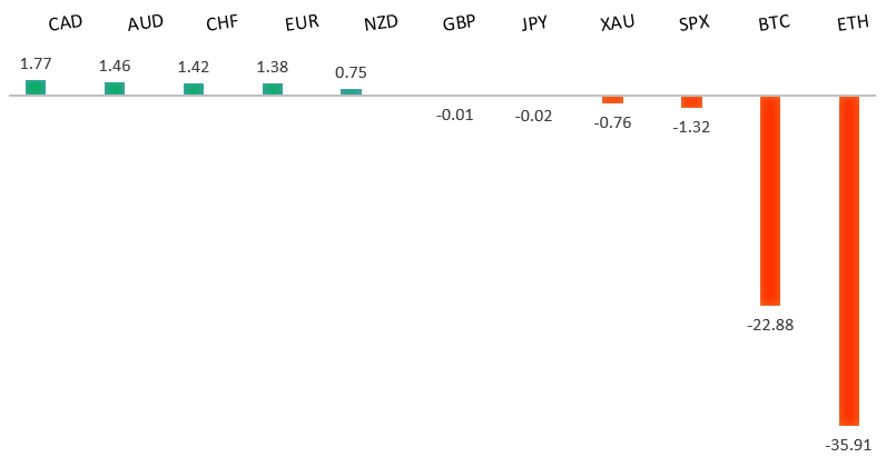 Peformance chart: 30 Day Performance vs. US dollar (%)