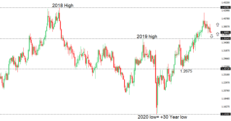Technical studies are in the process of unwinding from stretched levels after the push to fresh multi-month highs. This leaves room for additional setbacks over the coming sessions, before the market considers a meaningful bullish continuation towards a retest of the 2018 high. But look for setbacks to now be very well supported into the 1.3500 area.GBPUSD – fundamental overview