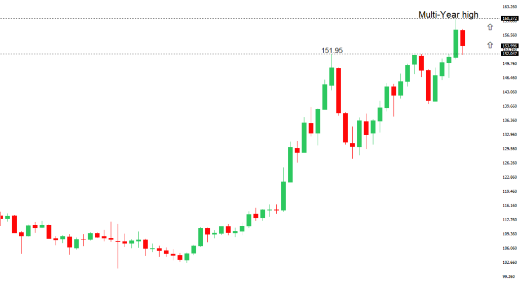 The market remains confined to a strong uptrend, most recently extending to a multi-year high through 160.00. Key support comes in at 151.95, with only a weekly close below to delay the constructive outlook.USDJPY – fundamental overview