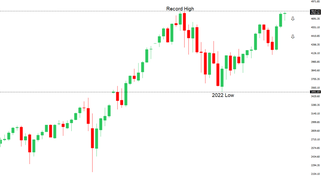 The Fed has finally bent to the will of the market, with the December 2023 policy decision revealing rate projections coming down from previous and more in line with what the market has been looking for. This has translated to more investor friendly policy going forward, which could now open the door for a run to fresh record highs in 2024. At the same time, we worry inflation remains a risk both the market and Fed are not taking as seriously as needed, which could once again force the Fed back into a more restrictive path and weigh heavily on stocks.GOLD (SPOT) – technical overview