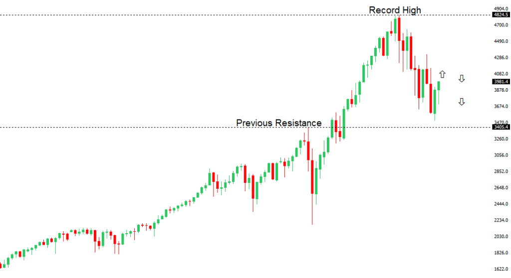 Longer-term technical studies are in the process of unwinding from extended readings off record highs. Look for rallies to be well capped in favor of lower tops and lower lows. Back above 4000 will be required at a minimum to take the immediate pressure off the downside. Next major support comes in around 3200.US SPX 500 – fundamental overview