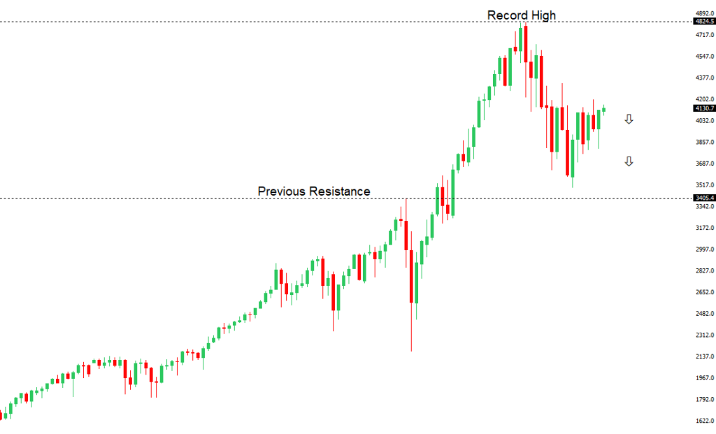 Longer-term technical studies are in the process of unwinding from extended readings off record highs. Look for rallies to be well capped in favor of lower tops and lower lows. A monthly close back above 4300 will be required at a minimum to take the immediate pressure off the downside. Next major support comes in at 3806.US SPX 500 – fundamental overview