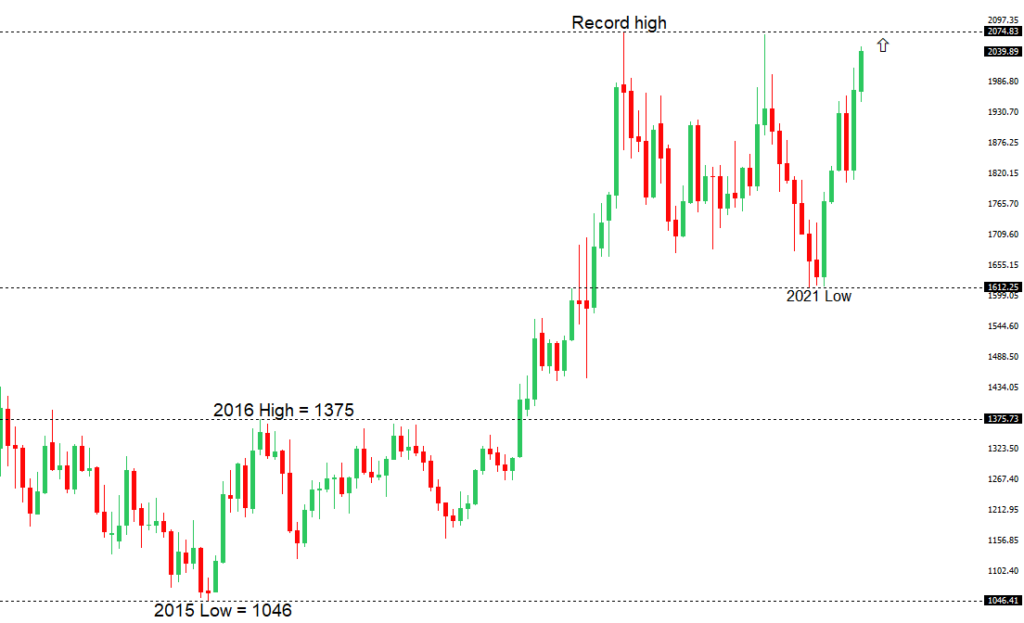 The 2019 breakout above the 2016 high at 1375 was a significant development, opening the door for fresh record highs. Setbacks should now be well supported above 1600 on a monthly close basis ahead of the next major upside extension. The recent break back above 1808 strengthens the bullish outlook. Next major resistance comes in at the record high from 2020 at 2076, above which opens the next extension towards 2,500.GOLD (SPOT) – fundamental overview