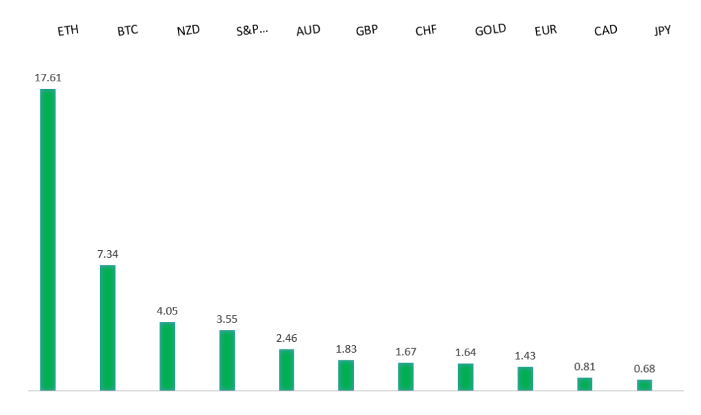 Peformance chart: 30-Day Performance vs. US dollar (%)