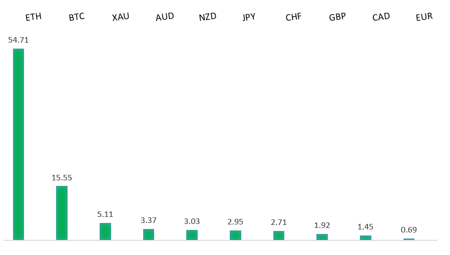 Peformance chart: 30 Day Performance vs. US dollar (%)