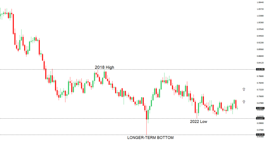 Overall pressure remains on the downside with the market continuing to stall out on runs up into the 0.6500 area. At the same time, there are some signs of the market wanting to put in a longer-term base. Ultimately, a break back above 0.6500 would be required to take the medium-term pressure off the downside and encourage this prospect. A monthly close below 0.5800 will intensify bearish price action.NZDUSD – fundamental overview