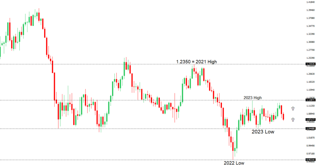 The Euro has been in a multi-month consolidation since bottoming out in 2022. Setbacks have since been exceptionally well supported on dips below 1.0500, with a higher platform sought out ahead of the next major upside extension. Look for a push through the 2023 high at 1.1276 to strengthen the constructive outlook and extend the recovery run towards 1.2000. Only back below 1.0400 negates.EURUSD – fundamental overview