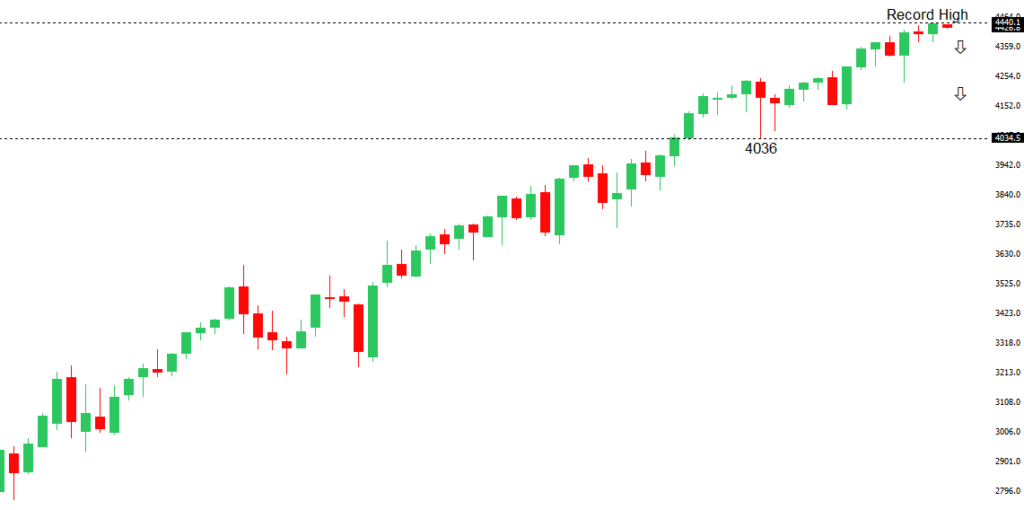 Longer-term technical studies are looking quite exhausted and the market is showing signs of wanting to roll over after racing to another record high. Look for rallies to be well capped ahead of 4500, with a break back below 4139 to strengthen the outlook.US SPX 500 – fundamental overview