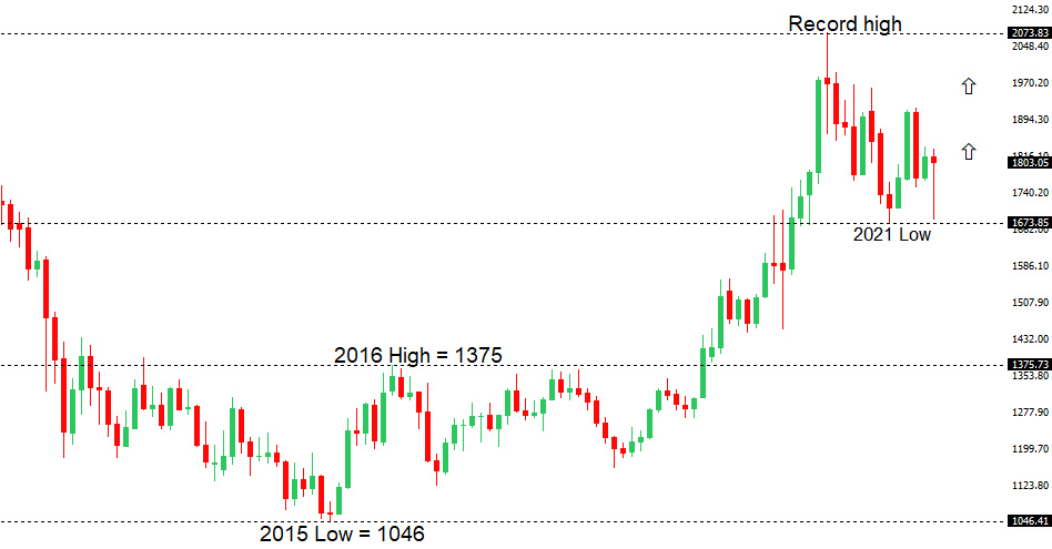 The 2019 breakout above the 2016 high at 1375 was a significant development, opening the door for fresh record highs and an acceleration beyond the next major psychological barrier at 2000. Setbacks should now be well supported above 1600.GOLD (SPOT) – fundamental overview
