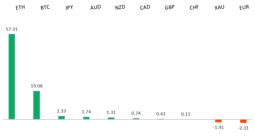 Peformance chart: 30 Day Performance vs. US dollar (%)