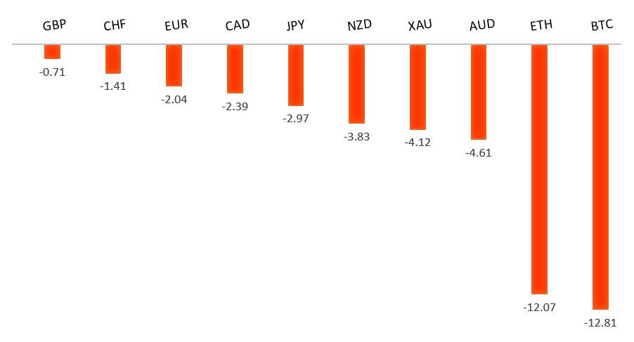 Peformance chart: 30 Day Performance vs. US dollar (%)